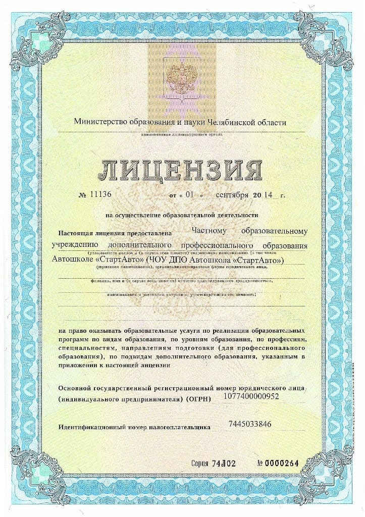 Лицензия автошколы Старт Авто